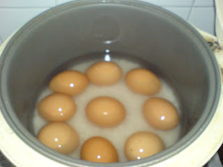 put the egg in the rice cooker when u cook the rice..it is easiest way to boil the egg.. killin two birds with one stone :)